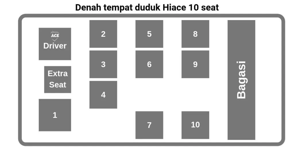 1. Lebih lega dengan Hiace: Penumpang akan dimanjakan dengan Toyota Hiace berkapasitas 10 penumpang, sehingga lebih lega dibandingkan dengan kendaraan yang lebih kecil.